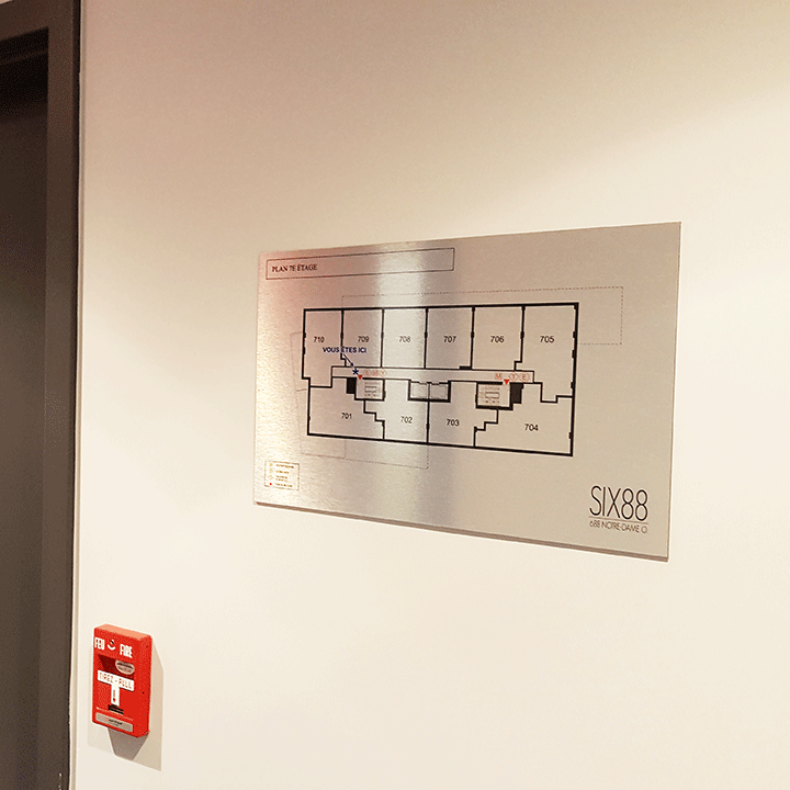 Nous utilisons des matériaux de qualité durable tels que l’aluminium, le plexiglas ou le PVC pour garantir la solidité de nos panneaux directionnels et assurer une visibilité optimale à long terme. Nos solutions incluent également des options pour améliorer l’accessibilité avec des panneaux en braille et des indications tactiles, afin de respecter les normes en vigueur.